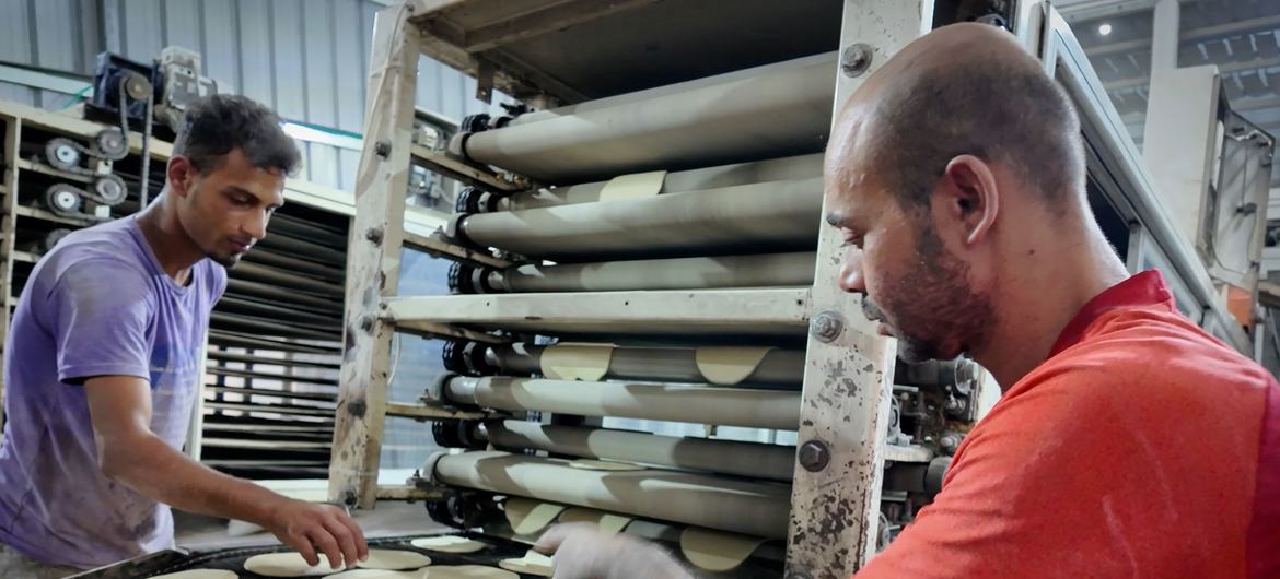 Bread is prepared at a bakery in Deir Al Balah, Gaza.